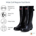 Wide Calf Wellies - Black Glossy - Regular Fit in Foot and Ankle - 37 to 49cm Calf