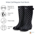 Wide Calf Wellies - Black Spot - Regular Fit in Foot and Ankle - Fit 37 to 49cm Calf