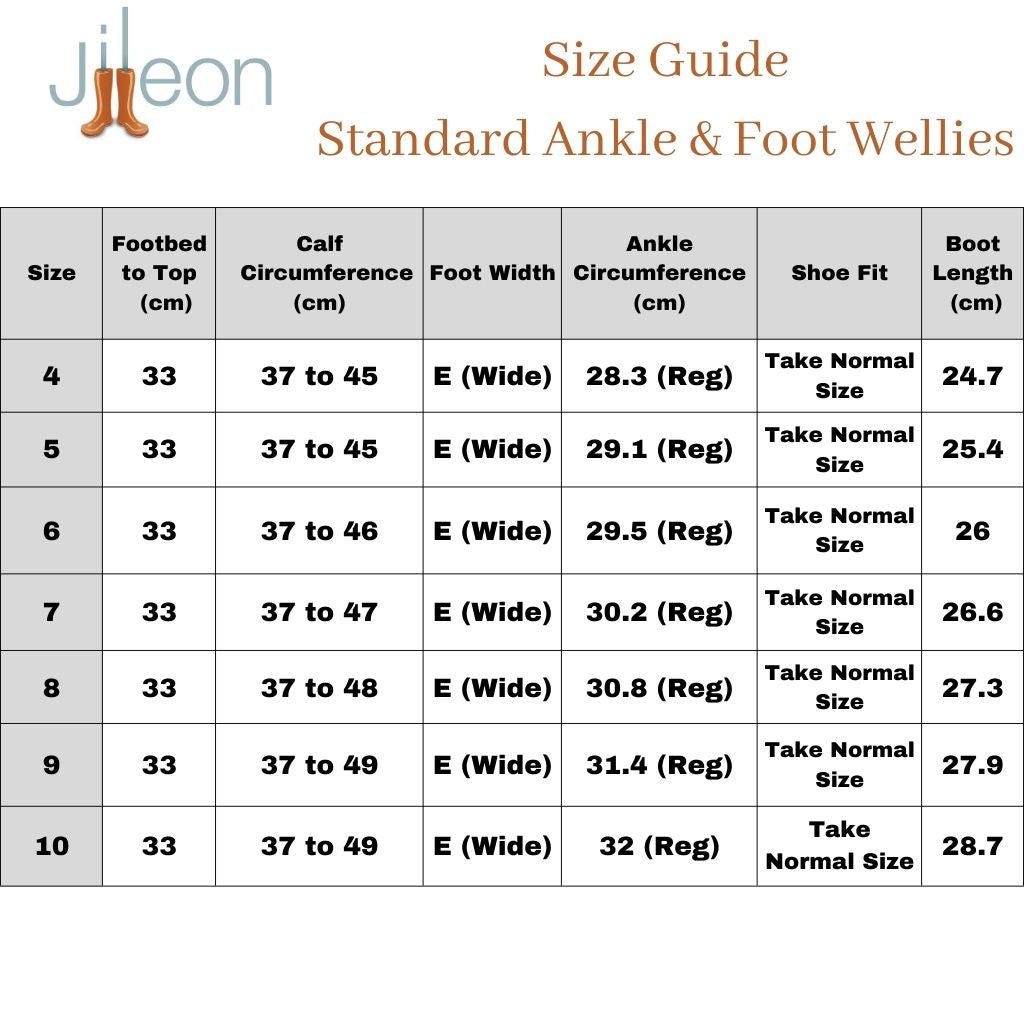 Oh tried to get wellies for years for wide calves, measured my calves and got normal size in foot and ankle . Perfect fit size 8 , with wiggle room. Highly recommend these. Well made. Love the wellie bag. Thankyou