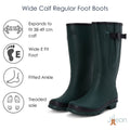 Wide Calf Wellies - Green with Black Trim - Regular Fit in Foot and Ankle - 37 to 49cm Calf