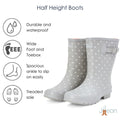 Half Height Grey Spotted Wellies - Wide Foot and Ankle